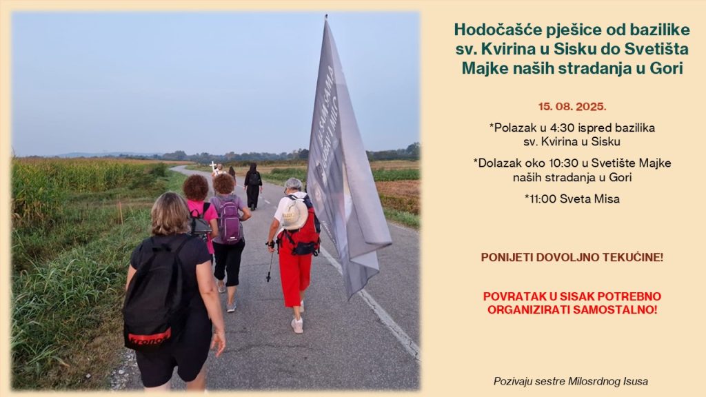 Pozivamo Vas 15. 08. 2025. na hodočašće pješke od bazilike sv. Kvirina u Sisku do svetišta Majke naših stradanja u Gori.